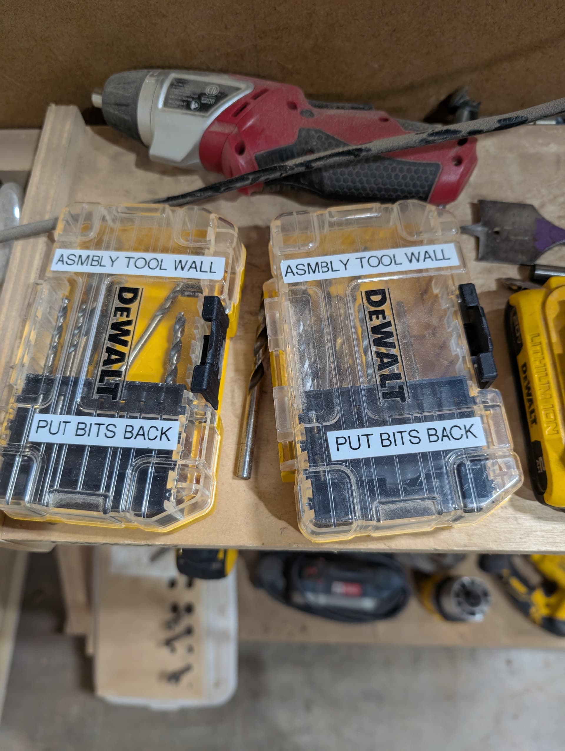 Additionally, there is a whole case of dewalt fits missing from the tool wall. If you have that, please bring that back.