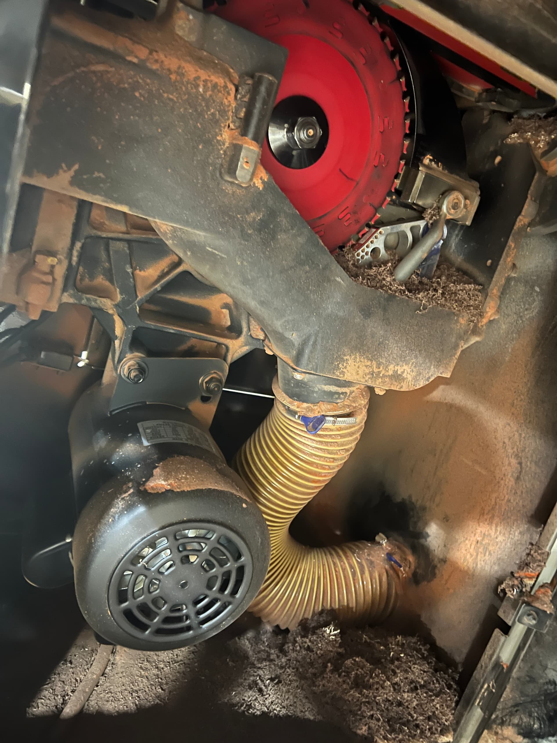 There was clearly a problem when I made my first cut. I confirmed DC wasn’t pulling air. I started cleaning it out but quit. Whoever was cutting walnut today really packed this thing.