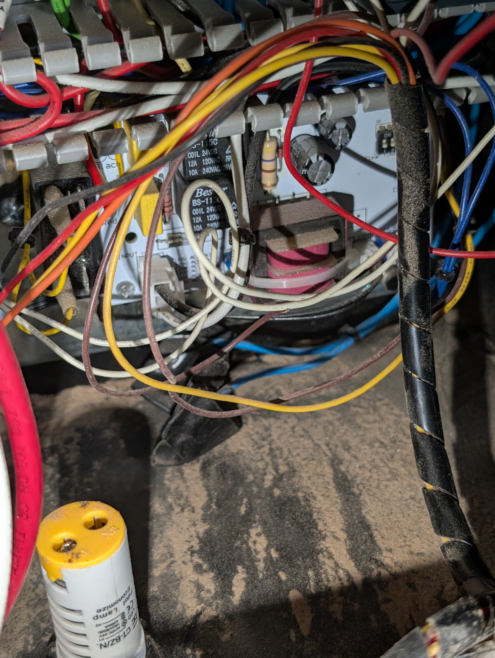 I don’t hear any clicks, buzzes, taps, or other noises when trying to turn it on. All wires seem to be connected except two small blue wires that appear to be intentionally disconnected (photo coming in).