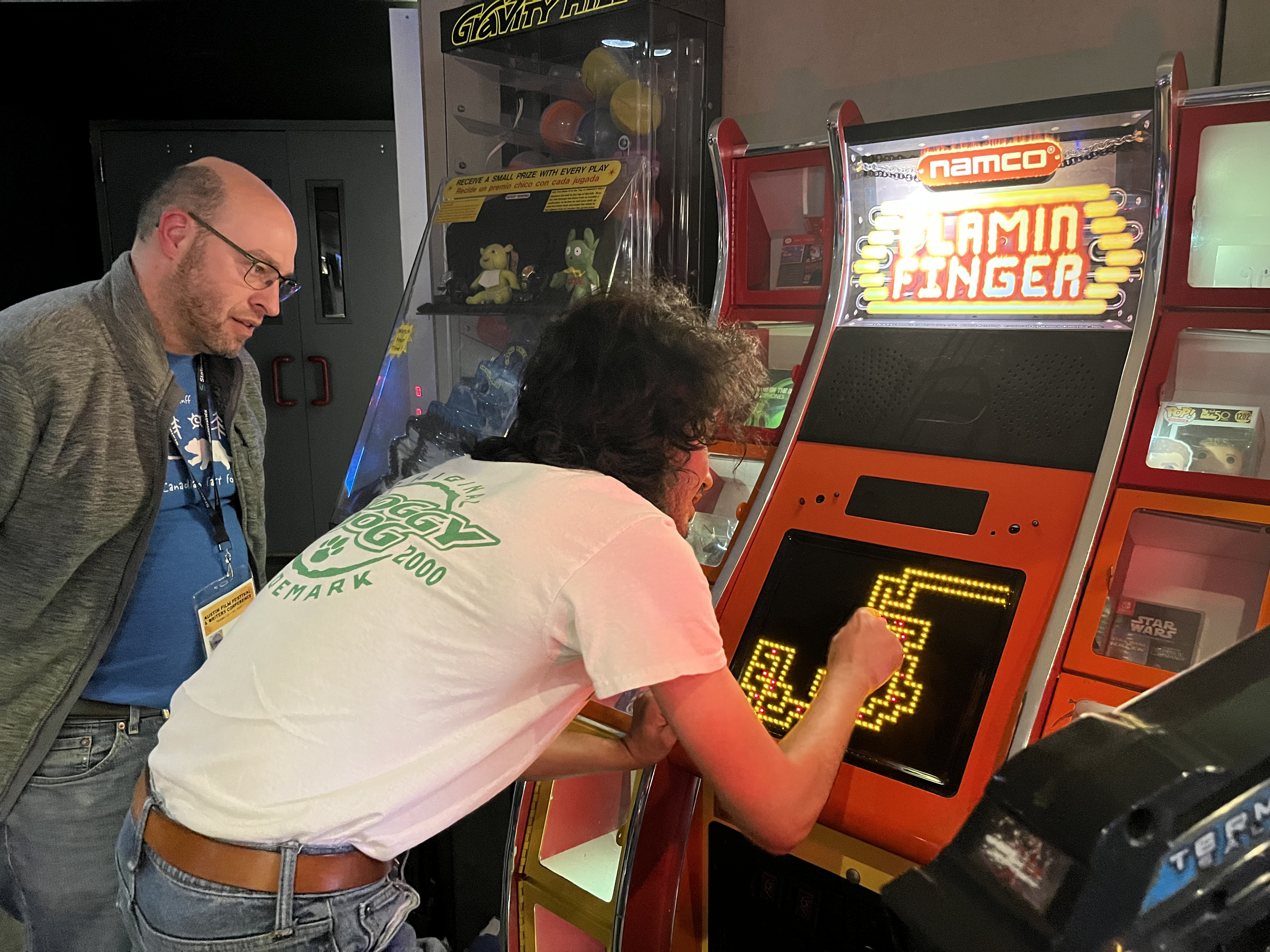 We also had a fun surprise end to the festival at the final movie we went to see. We ran into @YellowEng! It was super fun to watch the final movie of the week with a maker friend and learn about Flamin Finger!