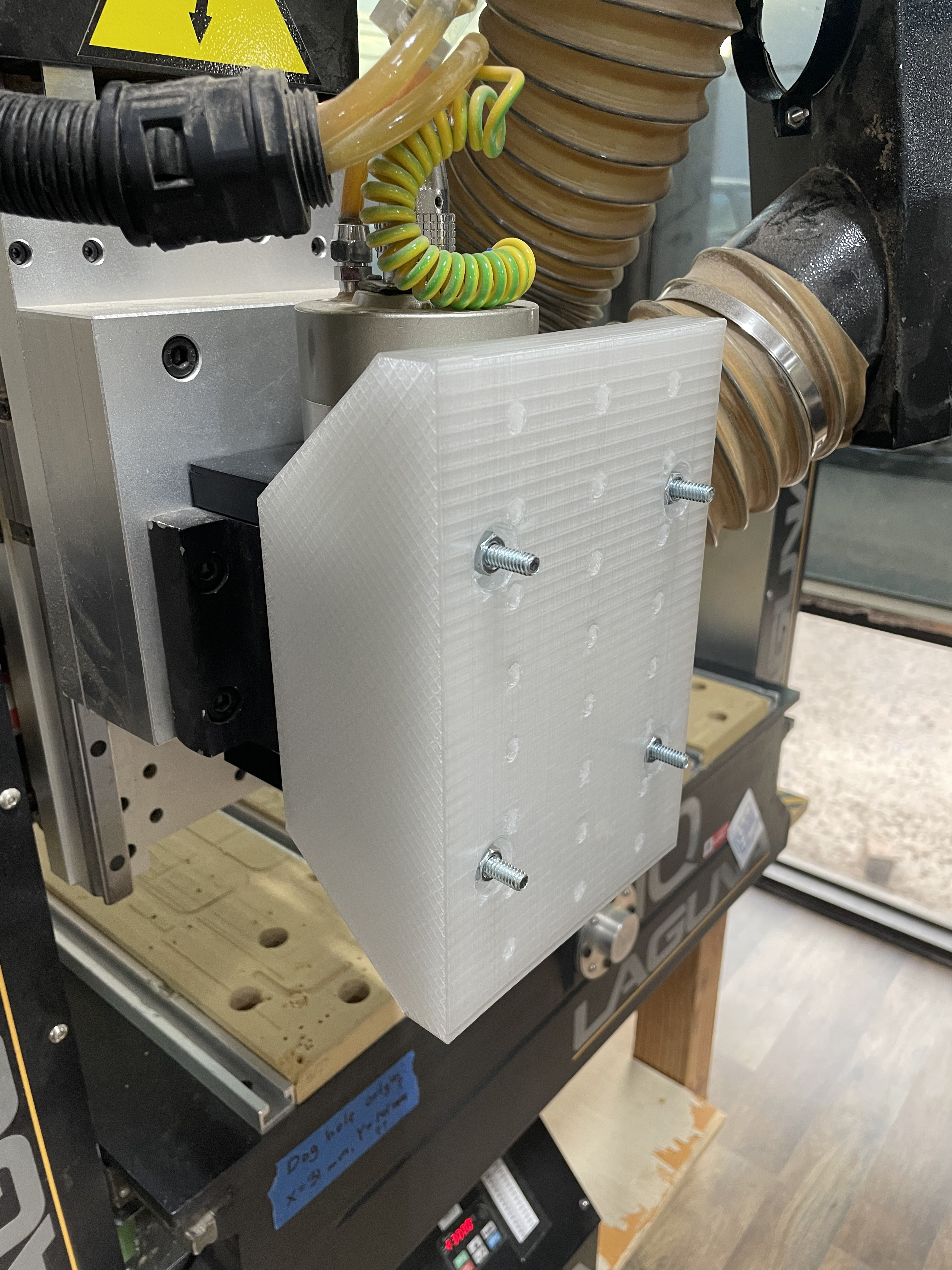 Thanks Brian. It would also be useful to attach an accessory like a laser, like we talked about at the CNC SIG meeting. I have investigated that option a little bit and decided it is probably too much effort to support properly and most likely not a change Asmbly would want made to the machine. I don’t think manually turning on/off the laser would be accurate enough. I reached out to a company that builds add on lasers for CNC’s and they do support the Laguna but the changes required are invasive. Here is there reply: