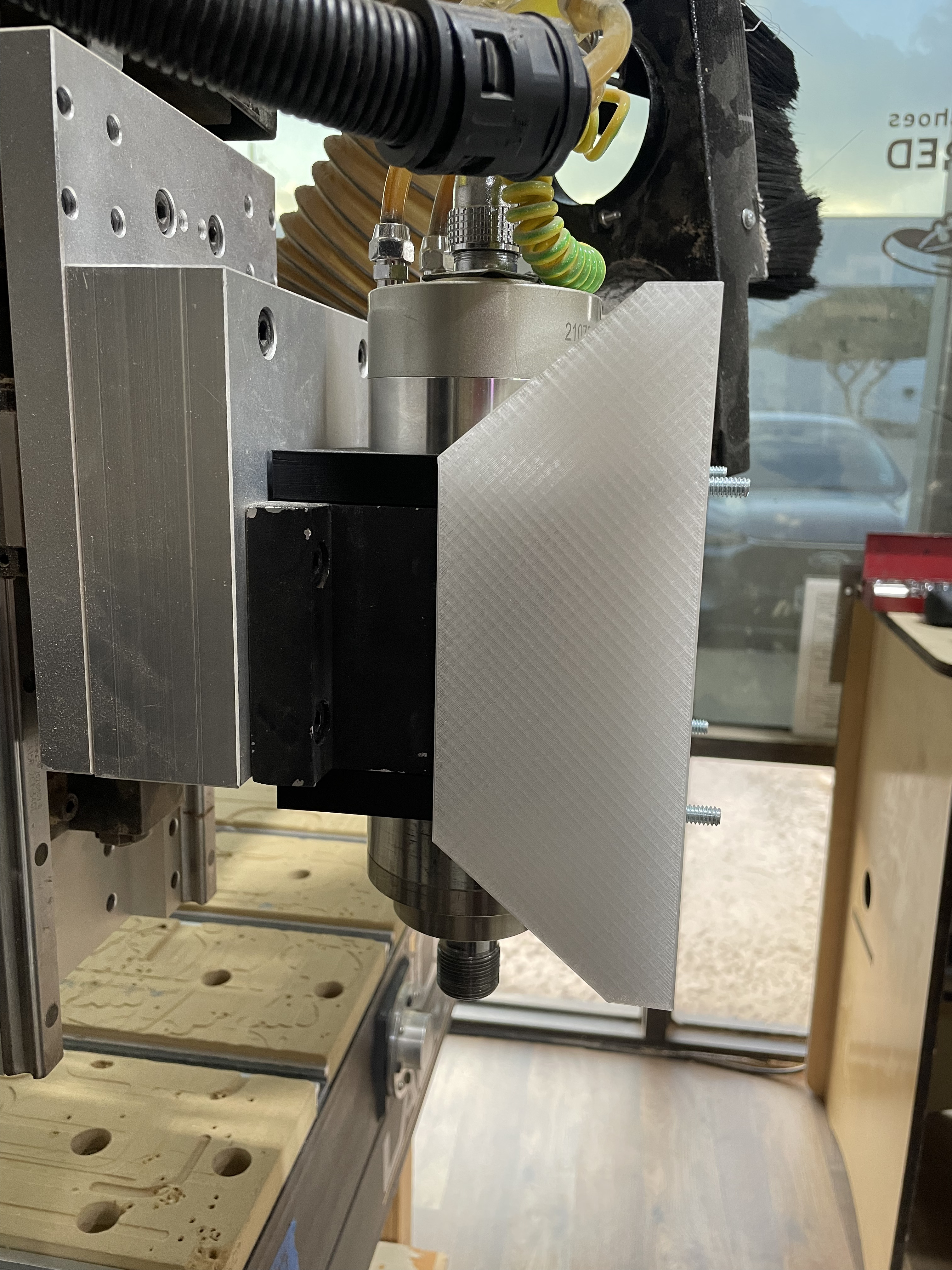 The front mount easily allows access to the spindle collet shaft, but it does require the bulky dust boot to be removed when it is attached to the CNCs.