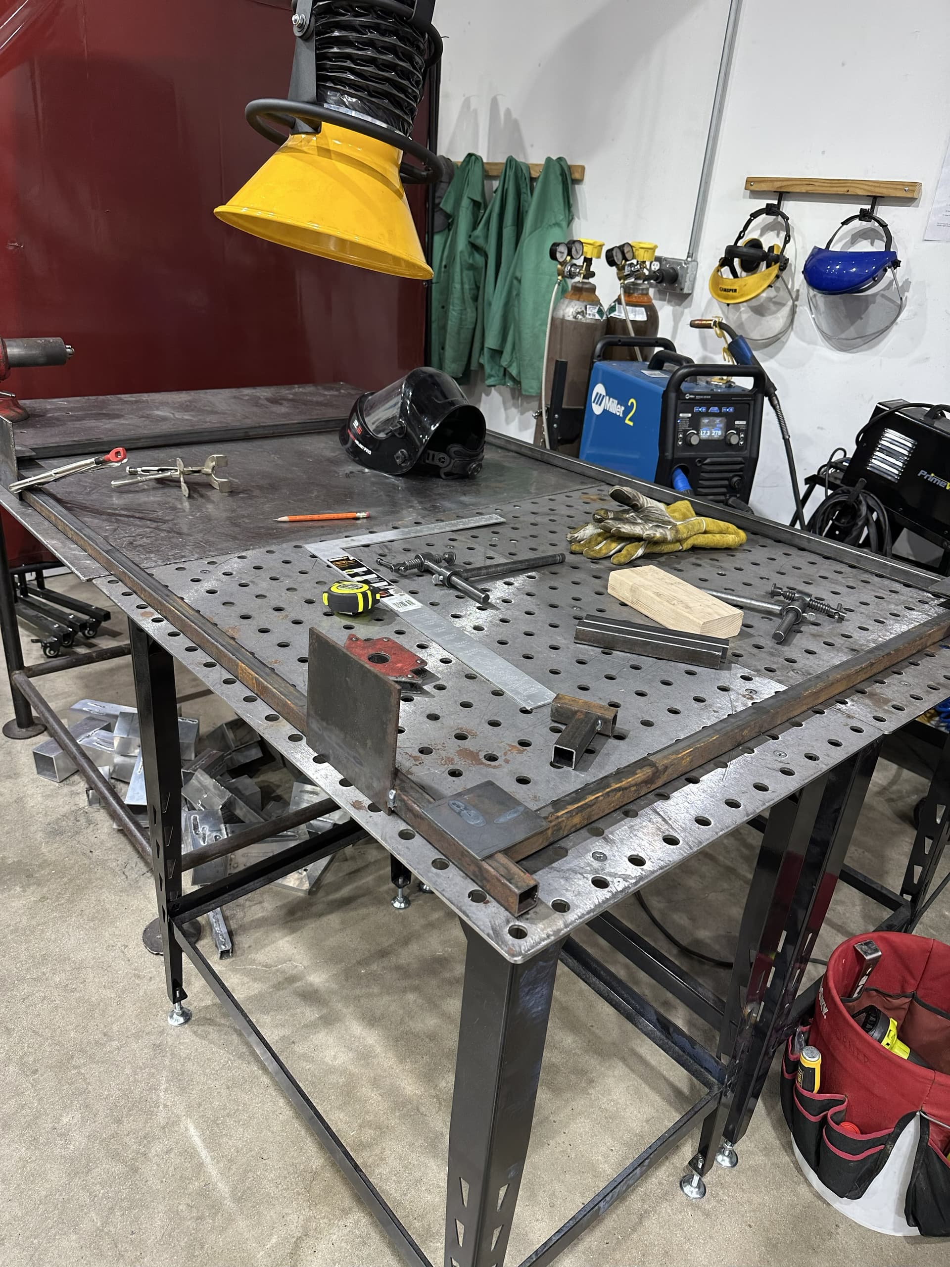 I used the metal shop and woodshop to weld a custom fence gate frame and the woodshop to plane the crappy big box store Cedar planks to make this fence gate. Still struggling to get nice uniform beads with the MIG welding.