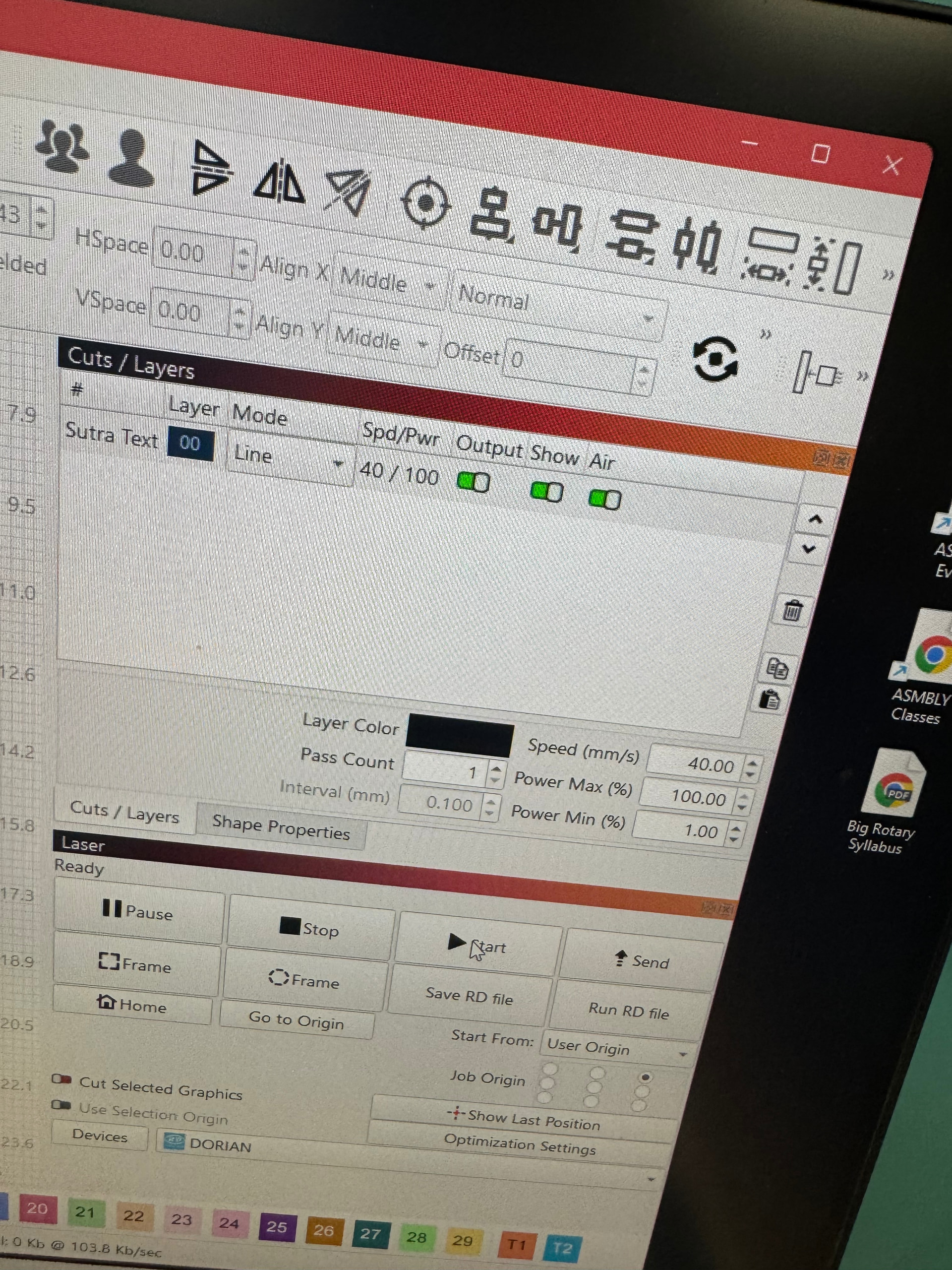 Could it help to have a page made out with most common encountered problems of people using The lasers with the usual solutions. Like a shortcut on the computer. Or a trouble shooting table of common problems and a work around or fix suggestions. I think it would provide a better experience for people to have something at hand and be able to resolve “their problem.” maybe even include it in the class? Seems like often lately simple things keep popping out with solutions already covered. I’m glad they’re taking the time to ask and report it but If I was them, I much rather have something I can do now rather than loosing time asking around instead of working on my project.