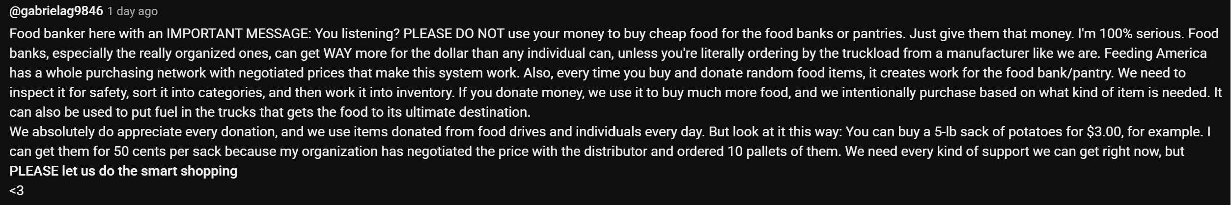 We donate there every year, but my partner and I made an extra donation over the weekend. I’ve volunteered there multiple times in different areas (kitchen, food intake, meal packaging), and it’s really well organized. Don’t forget to take a sweatshirt if you might be in the refrigerated warehouse space!