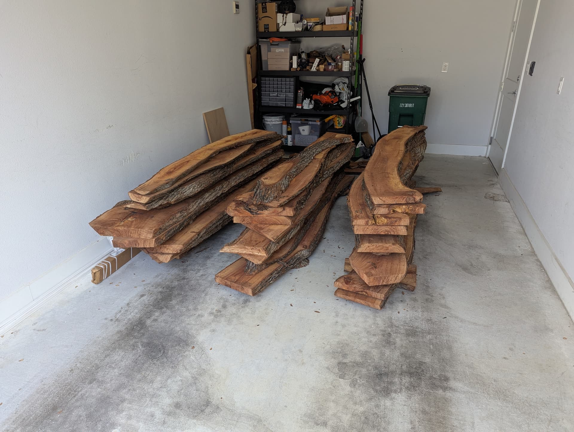 Hi all! I recently had some lumber milled from a tree that was taken down in my backyard, and ended up with significantly more lumber than I was expecting, but not enough space to store and dry it all. If anyone would like some project lumber, you’re welcome to stop by and pick some up!