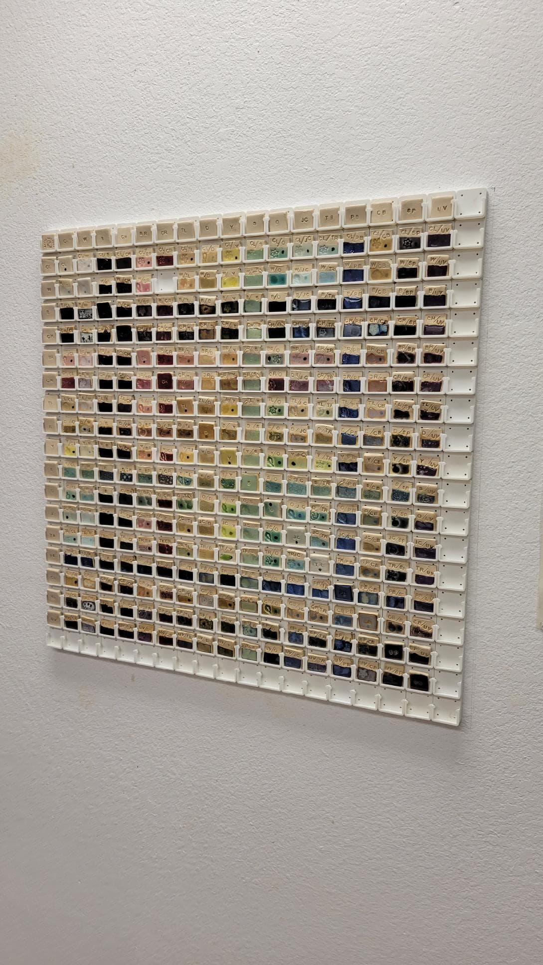 Earlier I wrote about my support of my daughter and her ceramics journey at Oasis Pottery in Las Vegas. The latest is a wall-mounted display of 361 sample glazed tiles using a Gridfinity design, over 160 hours of 3D printing and lots of 6x2mm magnets. Would our ceramics area be interested in something like this?