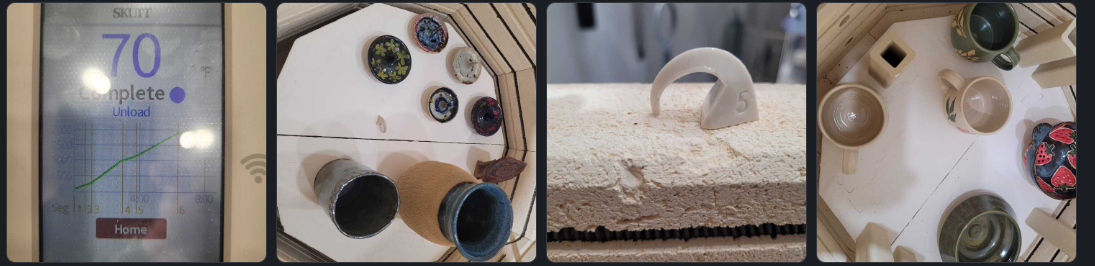 This is the next test fire. We are testing all the house dip glazes in all three interior zones on evenly spaced shelves. Cone 5 medium speed. As for the results of the cone 5 fast: A pretty dramatic amount of spitting.The white over blue was pretty volatile. Lots of motion. The Ivory really seems to have a mind of it’s own. The Skutt once again does what it is supposed to do.