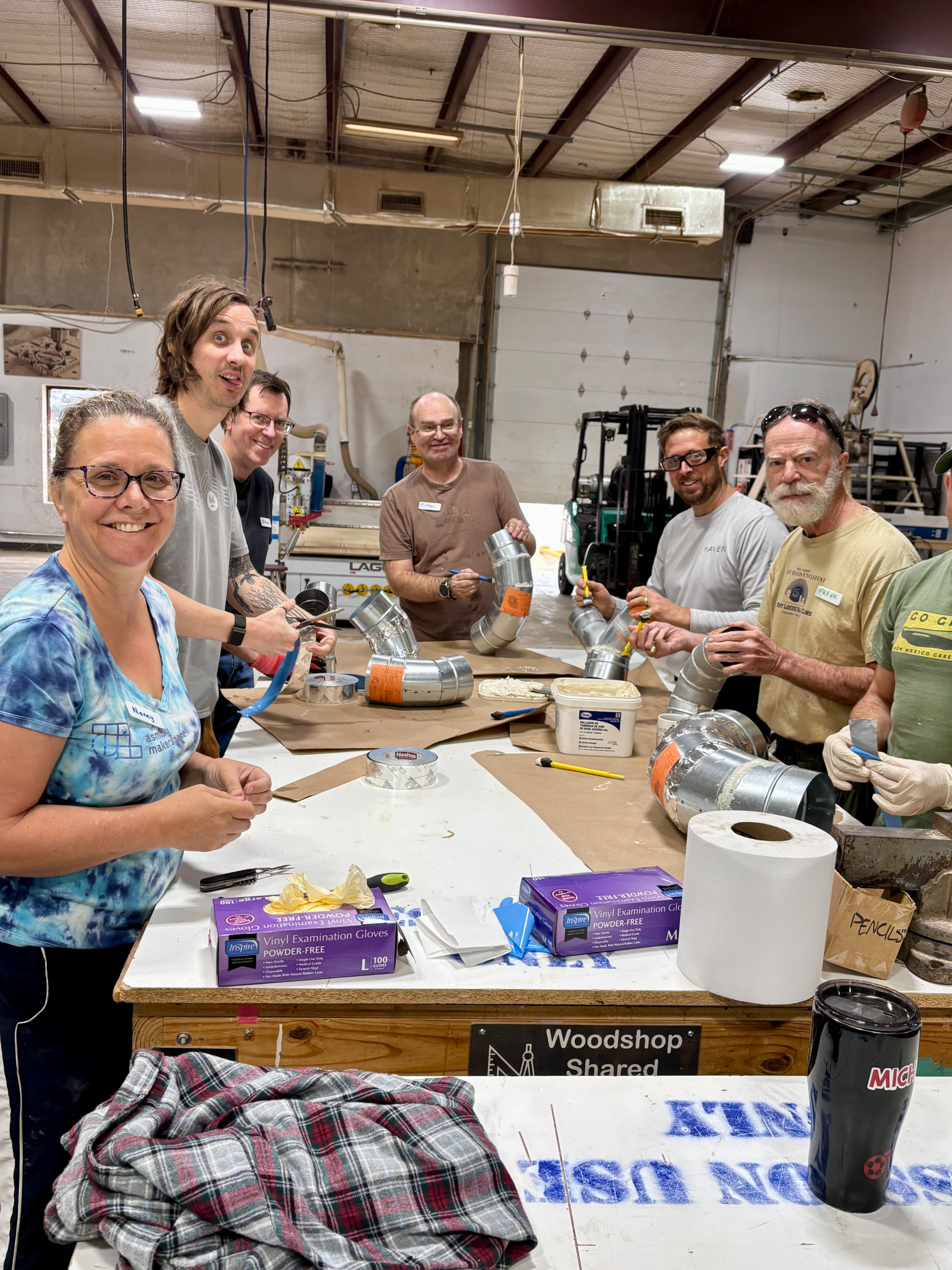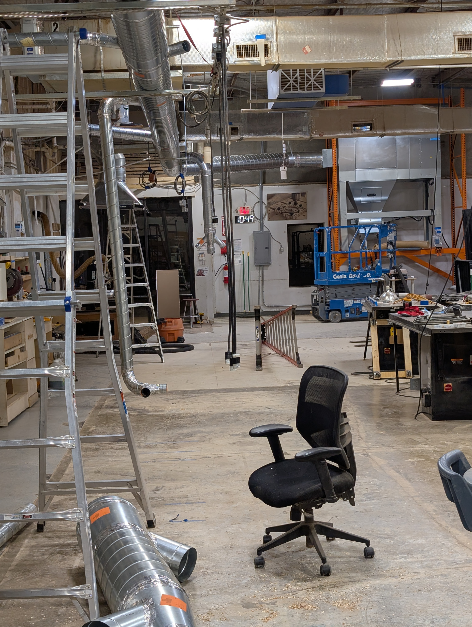 Friday morning things will get started early Friday. We’ll need help moving things out of the way to make forklift paths as well as a few hands to help setup the pallet rack. After that we’ll largely be on standby until the dust collector arrives. We cannot start tearing old things down until we set up the new thing. After the new thing is setup, it’s go-time for real! We tear all the old stuff down and push all the new stuff up. The action plan has a loose timeline, but we’re really going to be going as long as folks are around and able to help. We’ll break at a safe hour Friday and pickup early on Saturday.