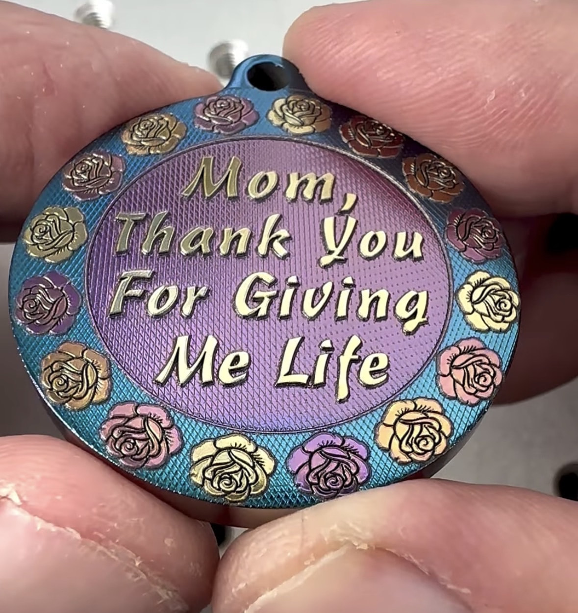 If you haven’t used a fiber MOPA before, the short version is: it marks and engraves on stuff our CO2 lasers can’t. Metals (stainless, aluminum, titanium), plastics, stone, ceramics, and it can even do color-marking on certain metals: