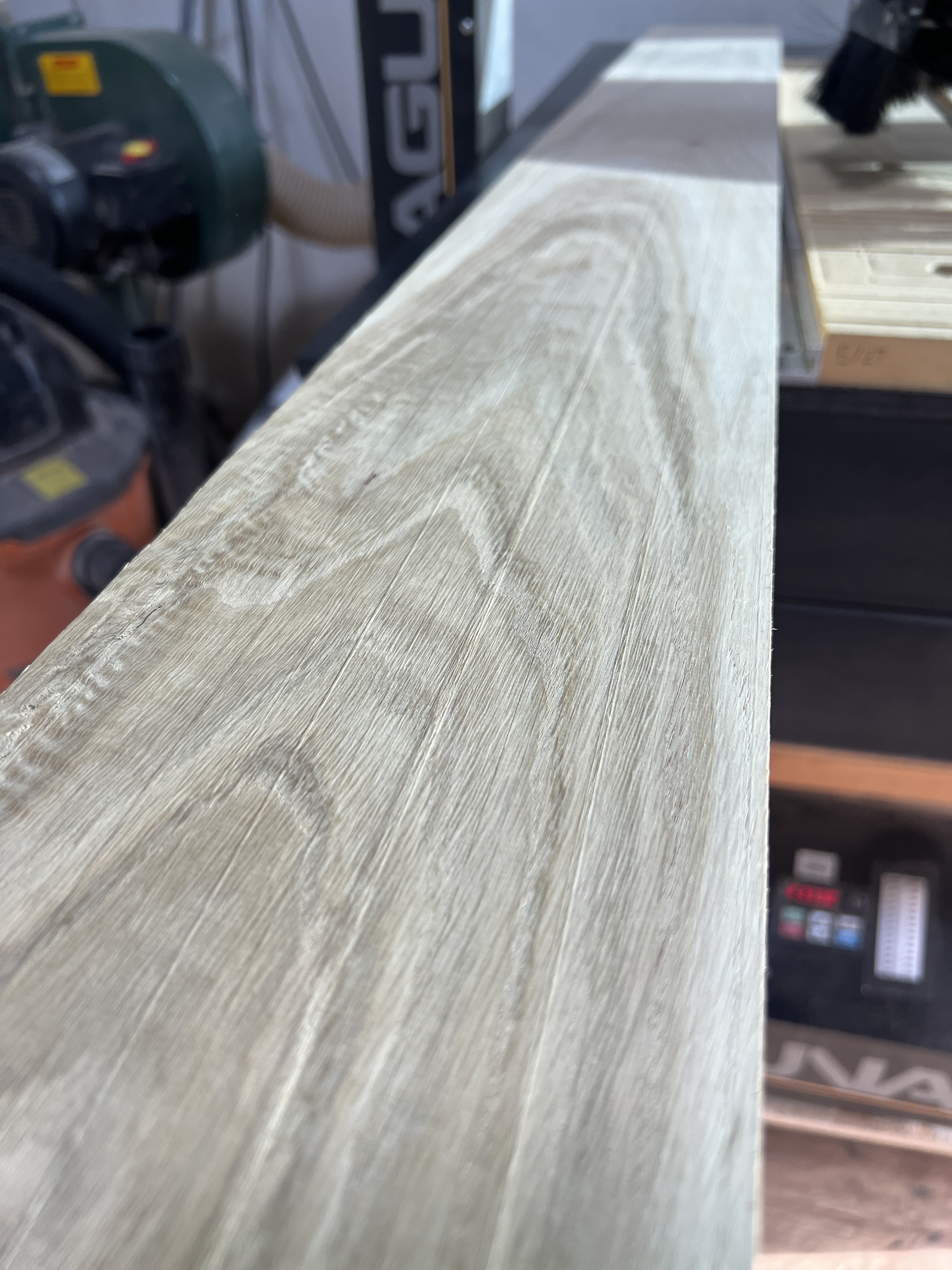 The planer was leaving some small raised tracks in some wood I was working with recently. I tried to sand those high spots off with the wide belt sander and found I was sanding a snipe into the leading edge of the board.