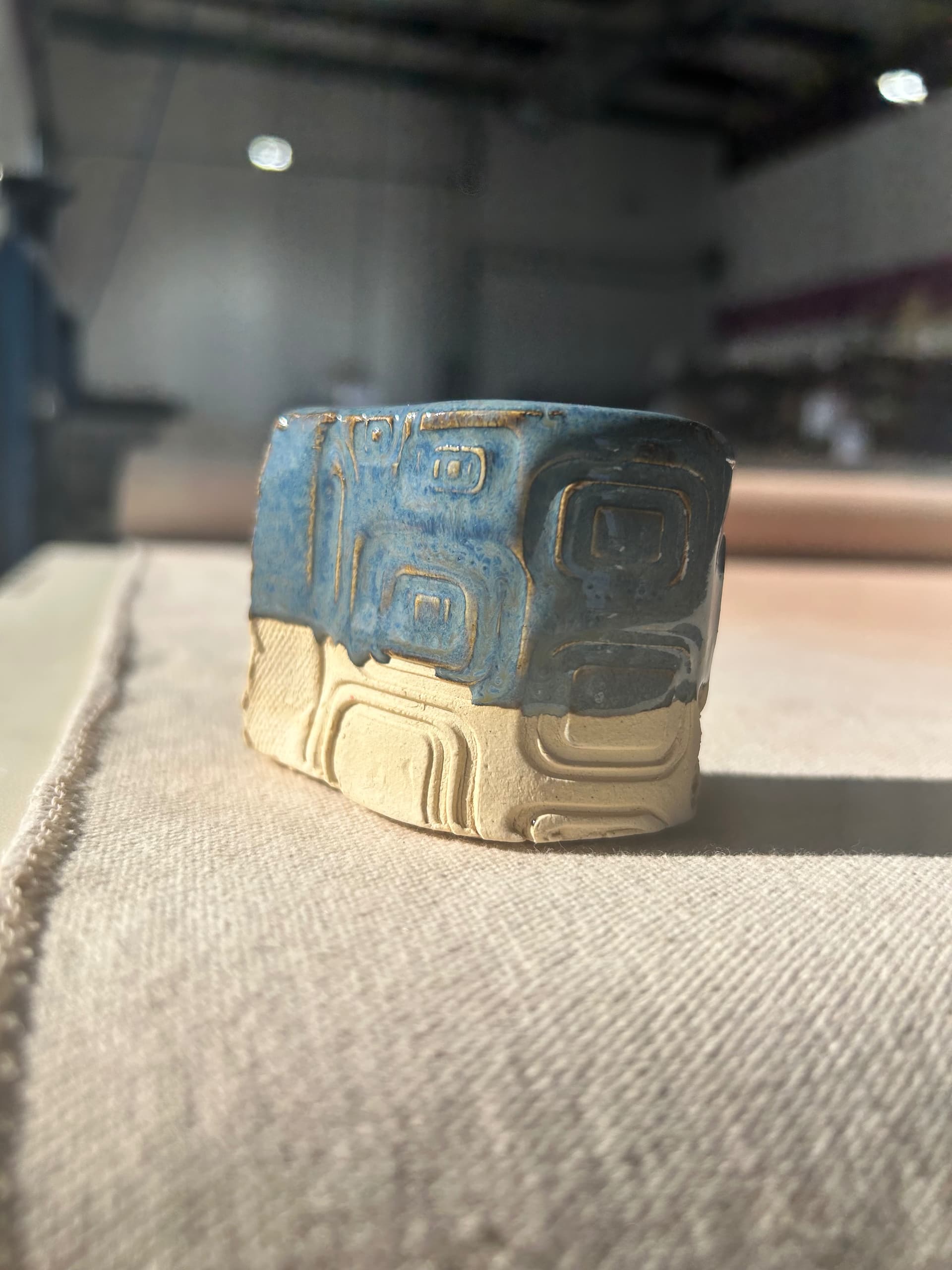 This test tile for Mayco Stoneware Stoned Denim came out impecable, and the dipping glaze will be offered now for the shop during holiday season.