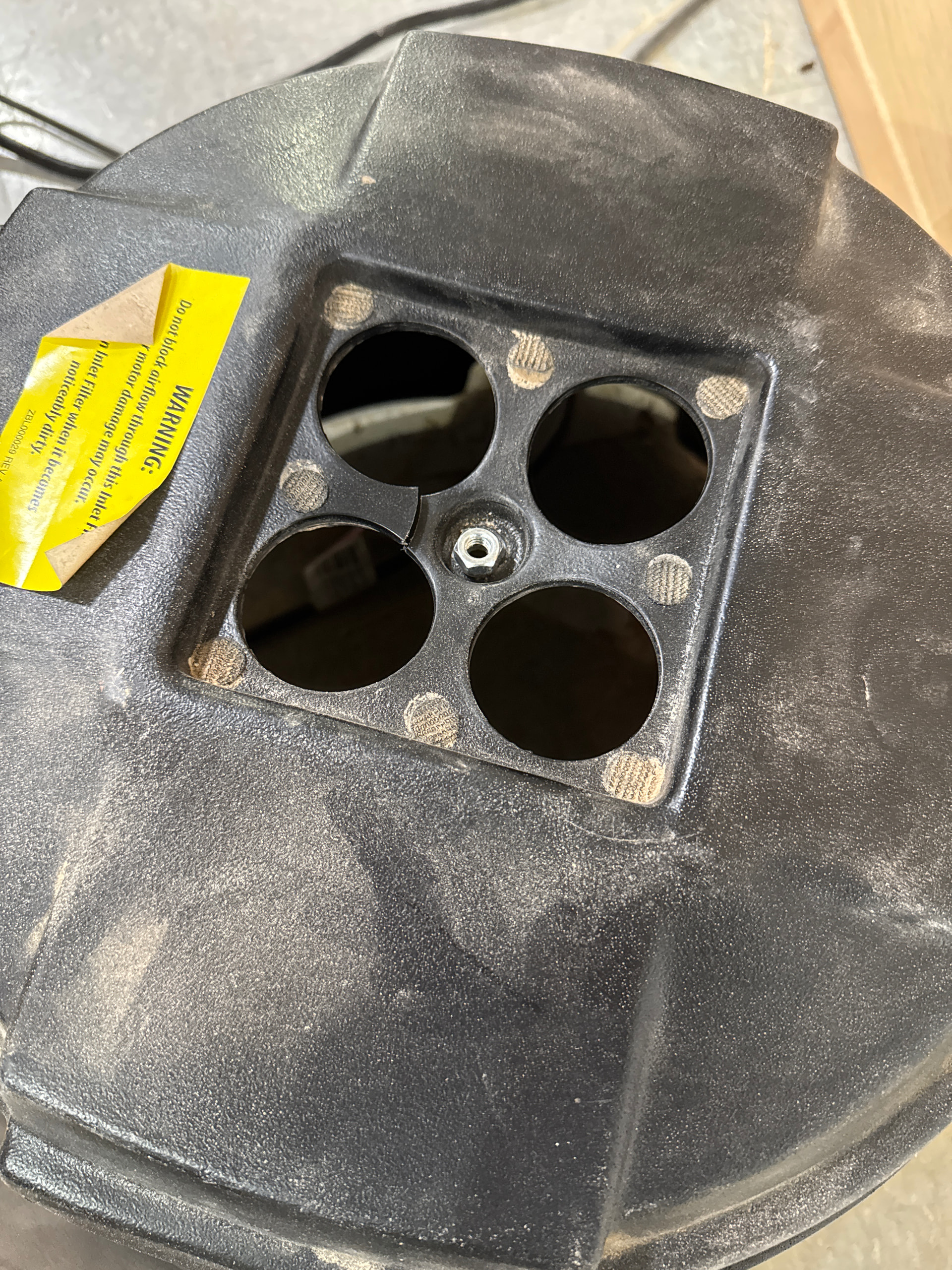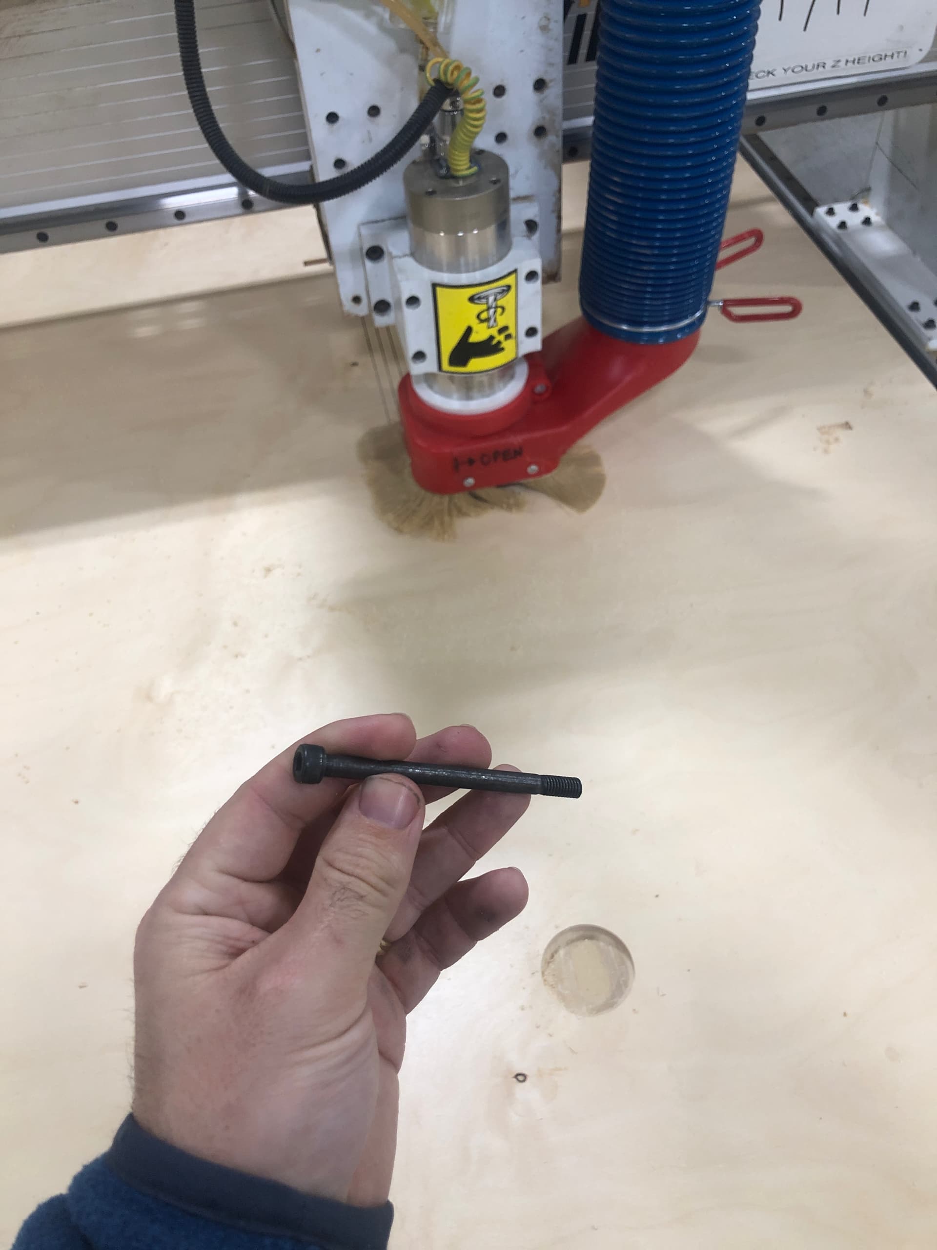 I have replaced the bolts and got it back running, raised the spindle a little bit for rotary clearance, and trammed. However, in testing the system I noticed severely reduced suction from the dust collector.