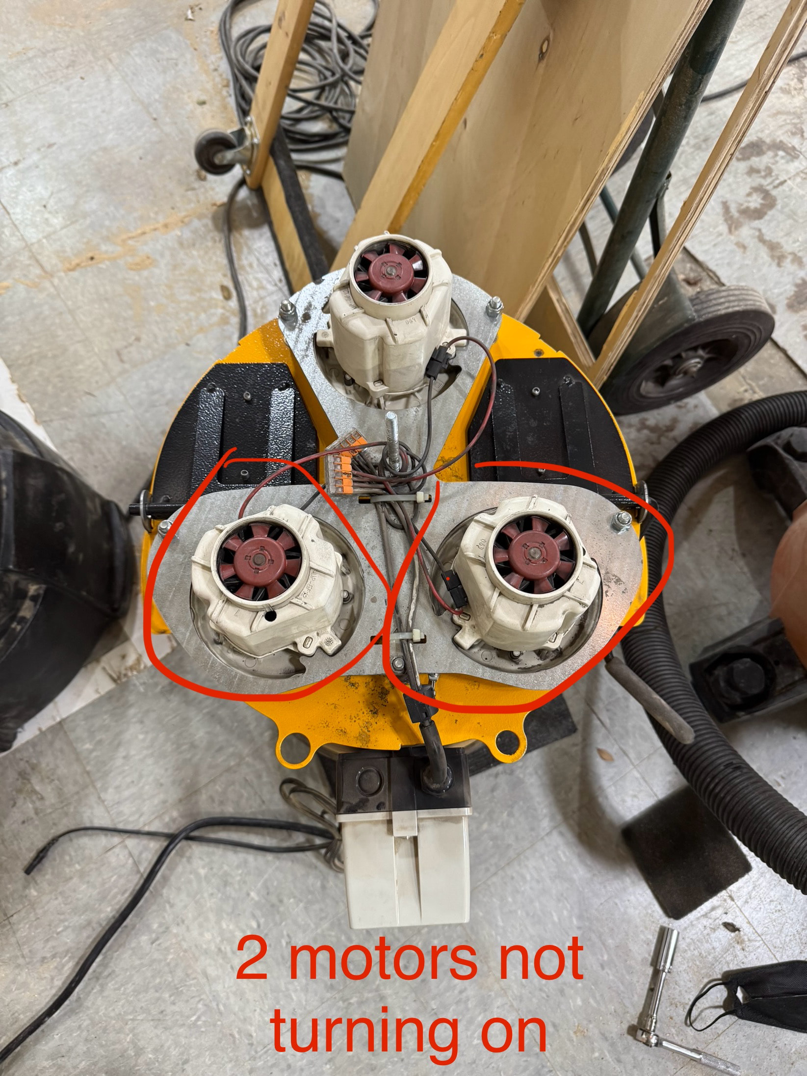 After investigating I found that only one of the 3 motors in the dust collector are running. I’m not sure what is preventing the other two from turning on. I verified wiring and that they can freely spin. The instructions mention a heat overload reset switch, however, I wasn’t able to located the switch