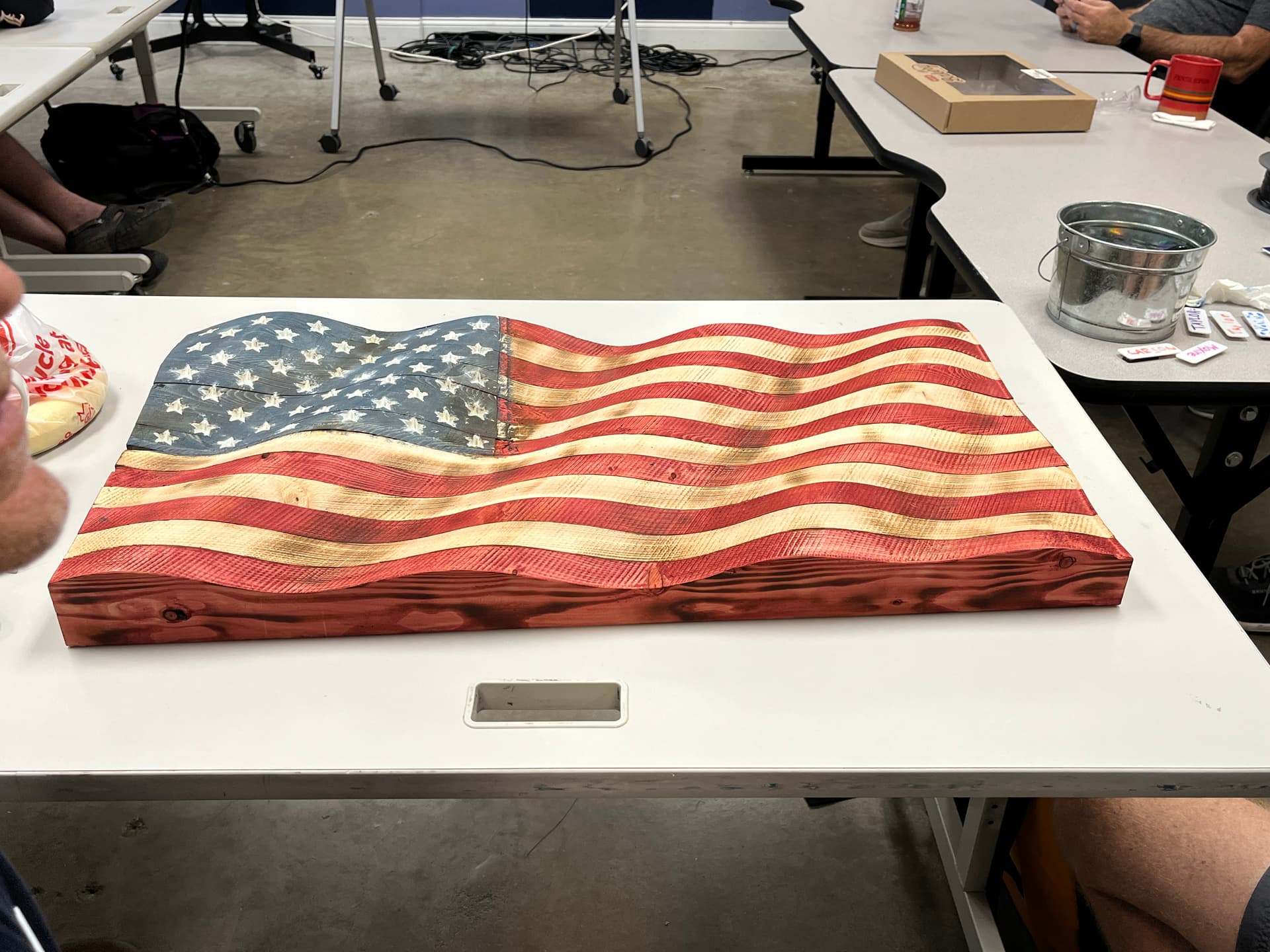 Steve and I made the flag at Asmbly, where Steve did most of the work but I cheered him on. Steve’s did the design in CarveCo, his most favorite CAD software. I’m glad we live in a free society where we can both share our pride in this nation and what it stands for, even though he and I disagree on quite a bit politically. It was wonderful, and I will always defend Steve’s right to be wrong any day of the week ![]()