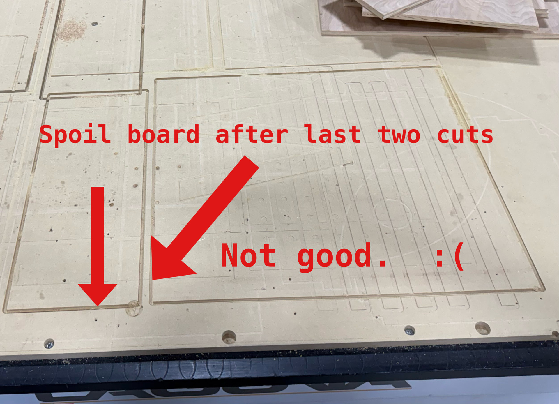 I ruined a spoil board on the 24th of January or so. Maybe right before that…because the bit came loose and started dropping a little at a time across the rest of the project (I paid for the spoil board, although that doesn’t account for people’s time and I’m sorry about that). However. It wasn’t a wrong z value.