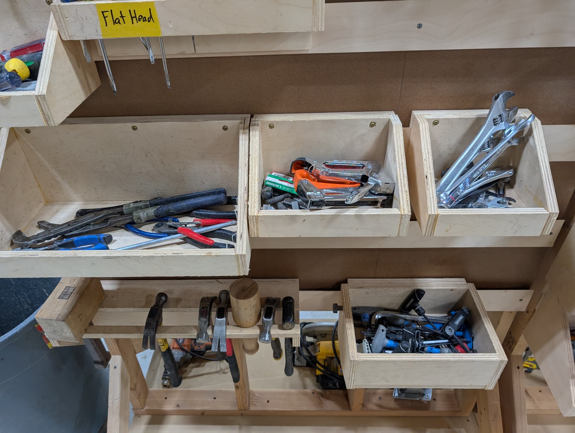 Additionally I made sure like-things were with like-things (wrenches where the wrenches go, bits where the bits go, electric planer where the label is).