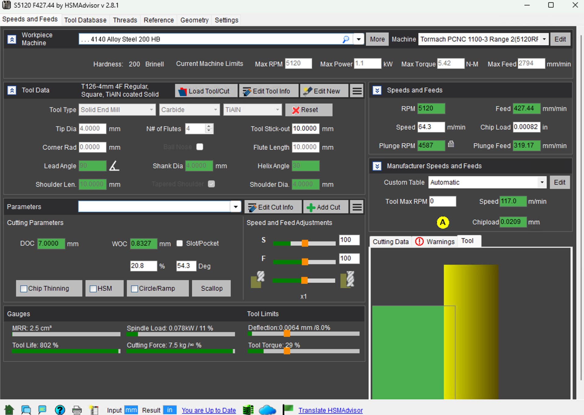 Everything else will come down to feeds and speeds. After a lot of reluctance, I finally committed to buying HSMAdvisor for small cnc. I can say, hand down, I will not load a tool into the tormach without running (and doublechecking) settings in HSMAdvisor. Clean, very efficient cuts that are calculated within the limits of our particular Tormach (PCNC 1100 Series 3) HSMAdvisor > All HSMAdvisor Licenses > 3 Horse Power Lifetime Floating License. You can probably mess around with the free version.