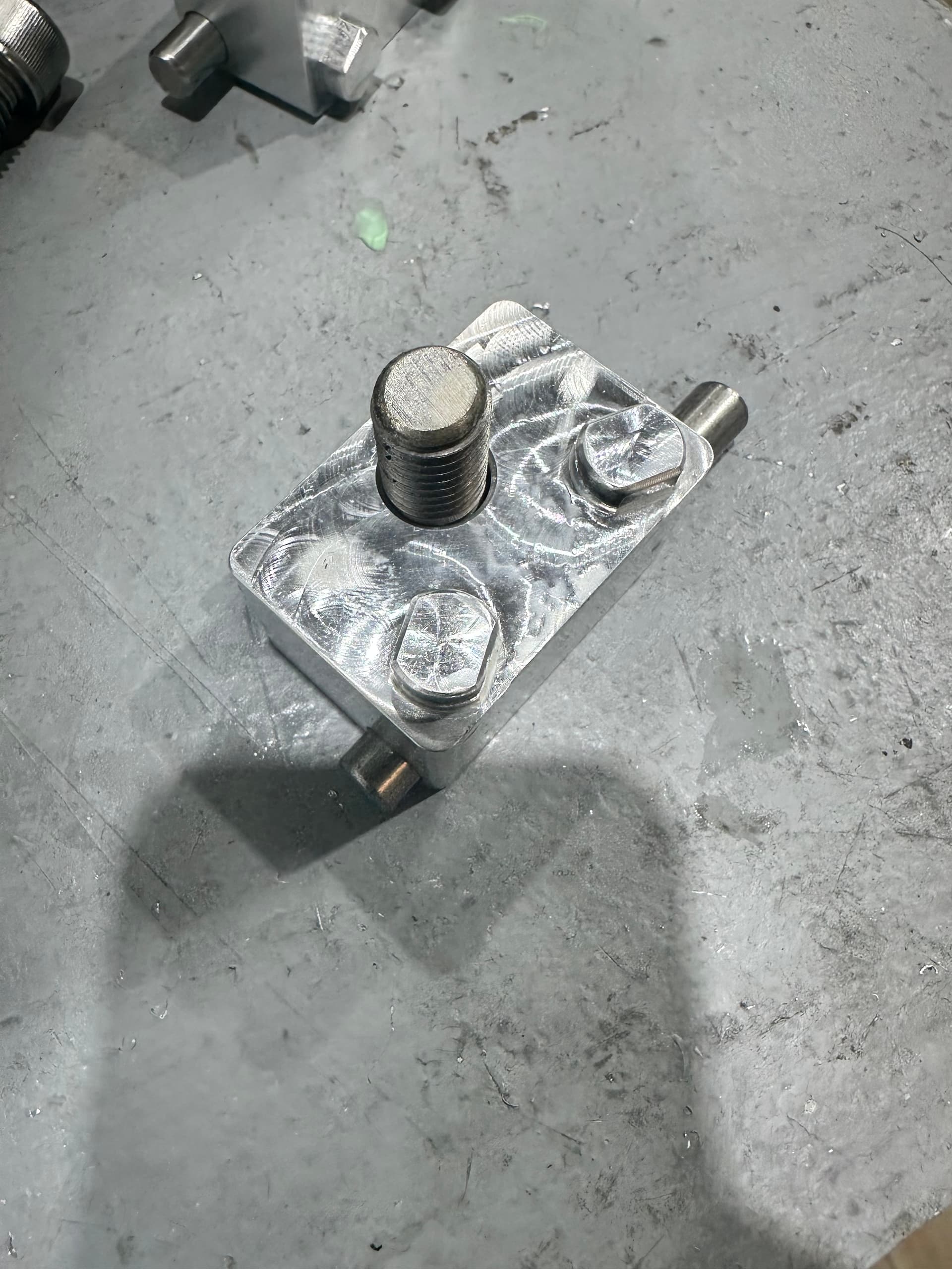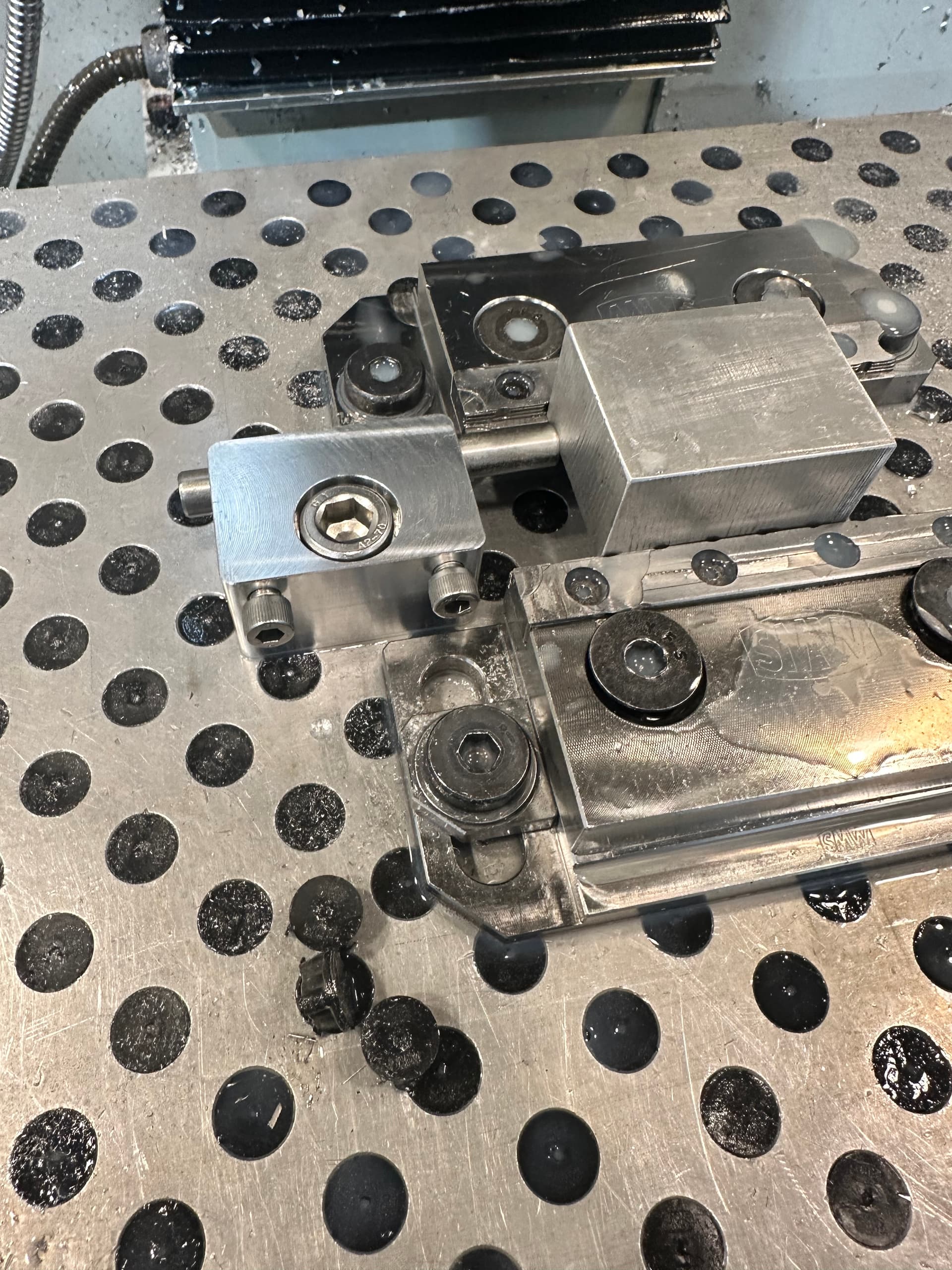 I made these stops so I have a repeatable X stop with the mod vises. They are designed to work with the SMW Mod Vises and the fixture plate. The rod is no higher than the mod vise itself, so you can leave it in place. The holder part is just a bit higher than the mod vise, so take care there.