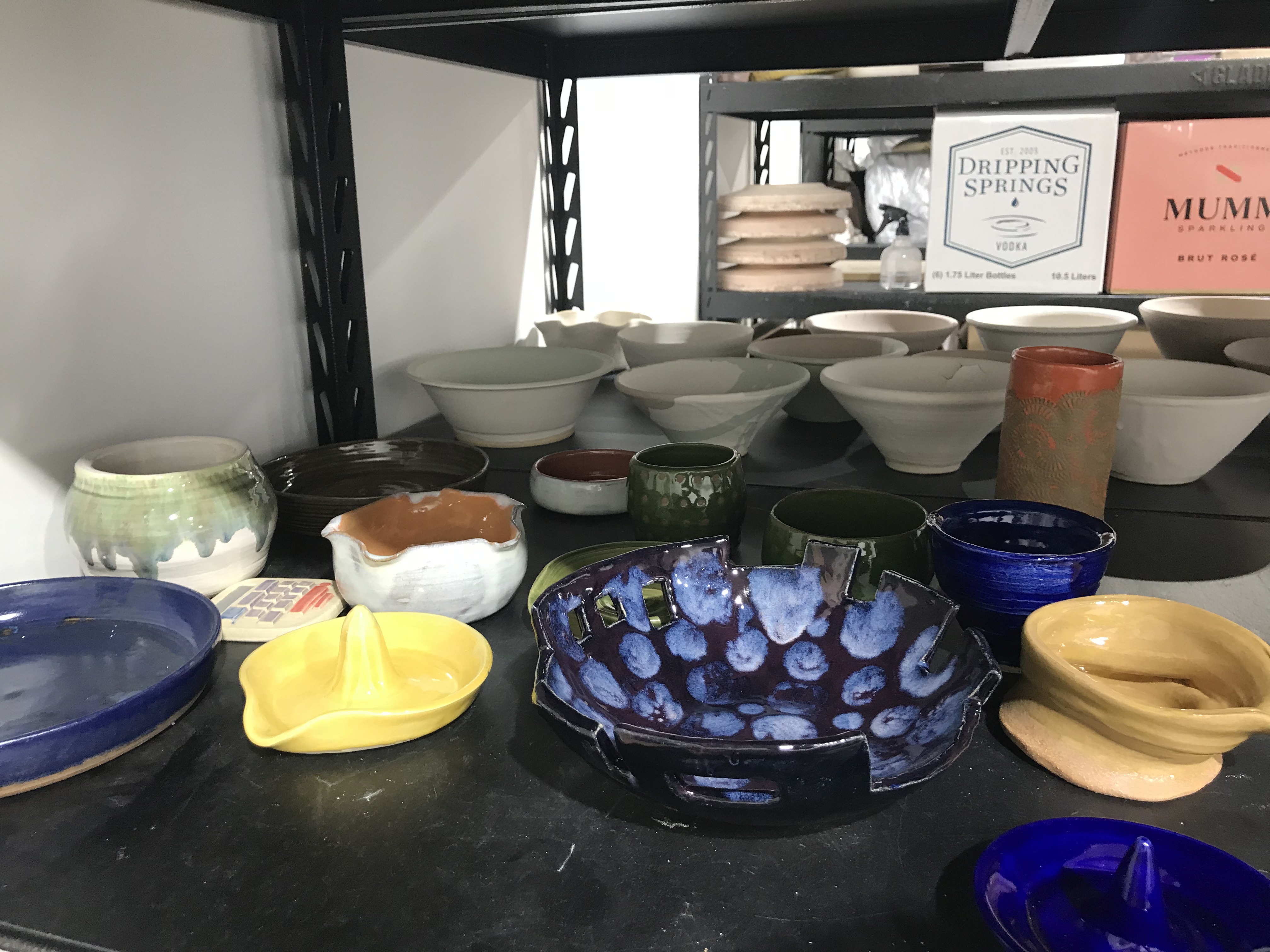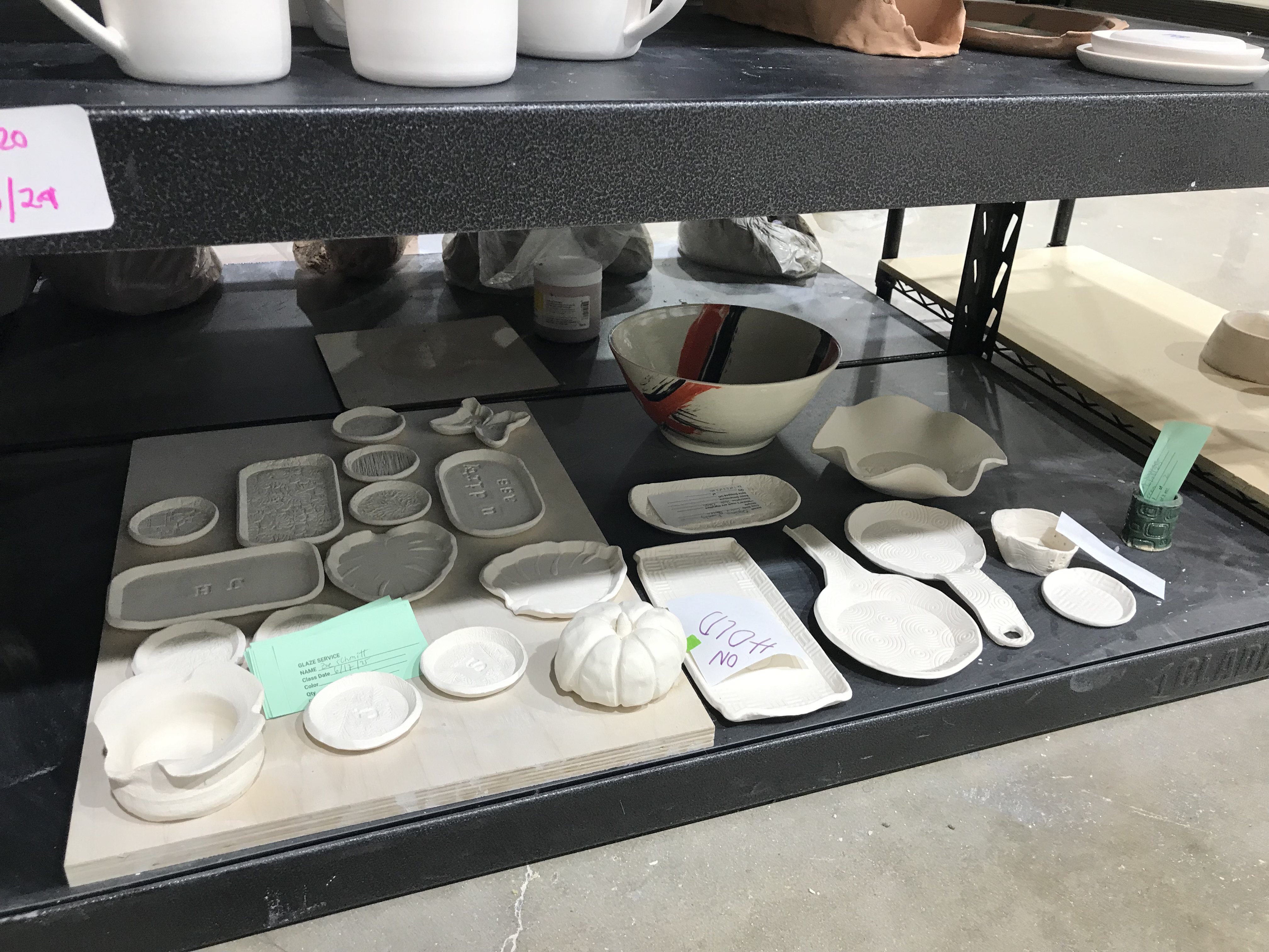 Hello! As the nights grow (slightly) cooler and hanging up freshly washed aprons feels more like hanging up stockings at the mantel, I begin to wonder at how lucky each person will feel opening their handmade gifts in the upcoming holiday season. Our filling kiln shelves are bursting with items that will be handed from one to another and perhaps a few gifts for ourselves. The studio was magical this evening as our members toiled away making special things for special people in our community.