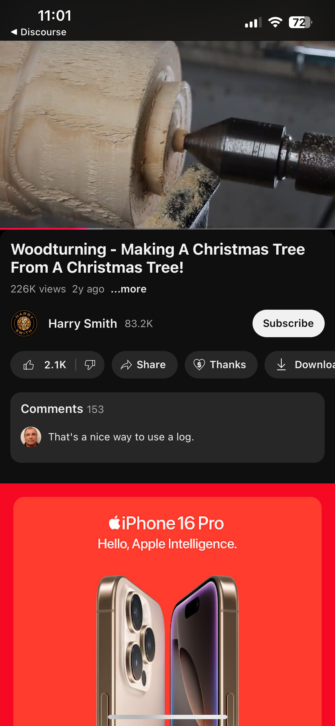 That wasn’t the original video I was referencing - the one I saw initially only used the chuck, and didn’t include the backstop. The wood only sat inside the jaws about half an inch, so it wasn’t very stable (and started wobbling as soon as I turned the lathe on). In most of the videos I’ve seen, it looks like you want at least an inch or so of the chuck to grab onto the wood.