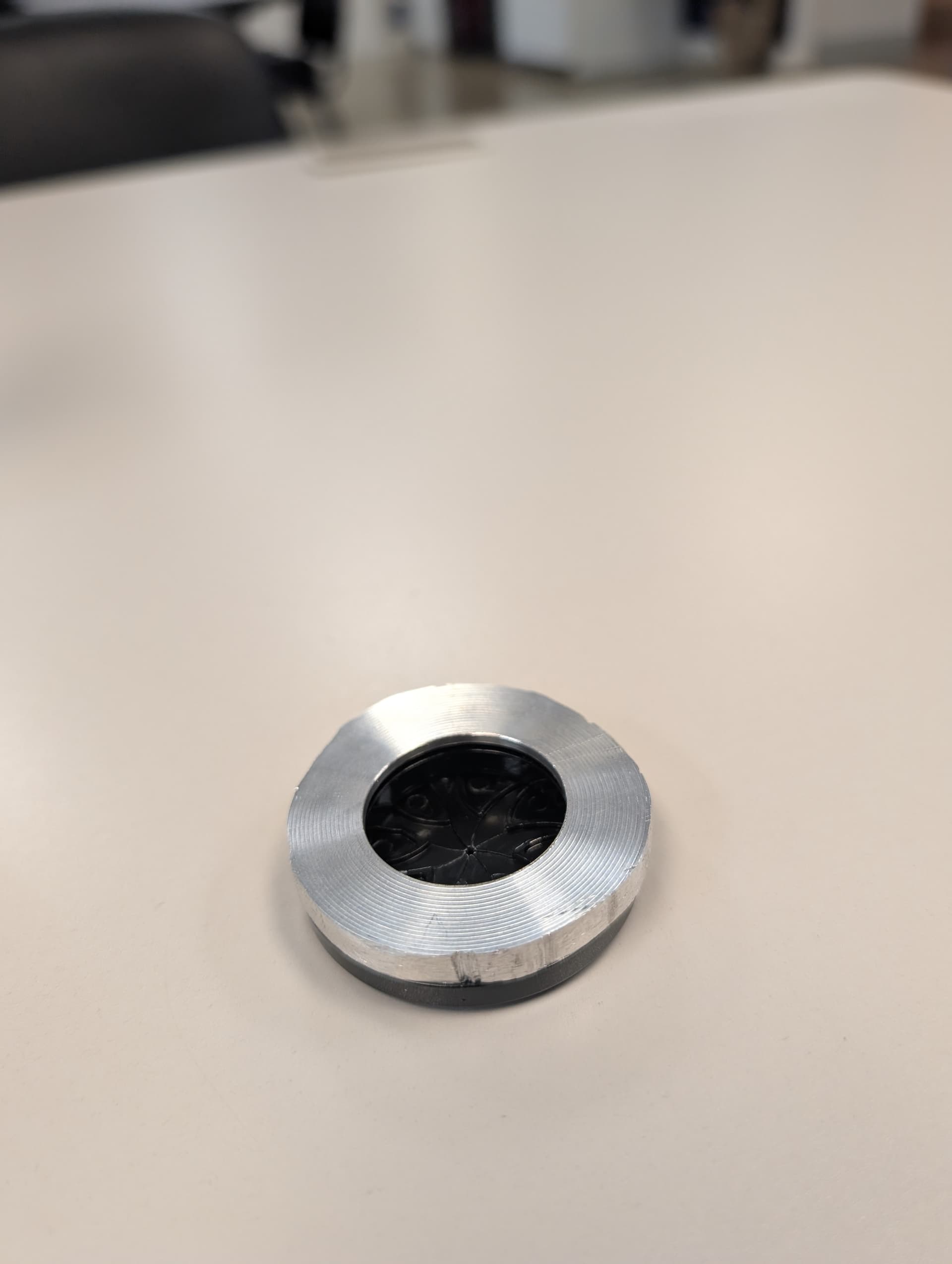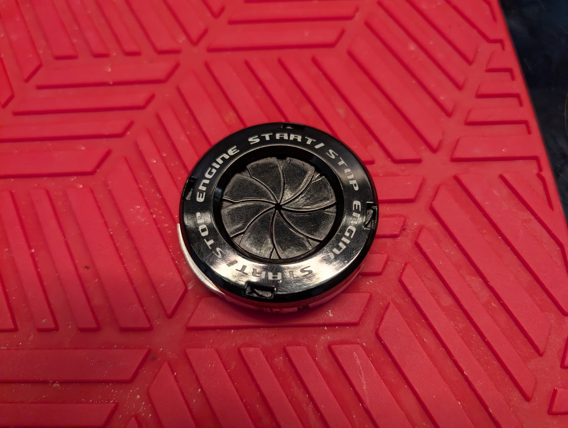 I got a novelty iris shutter/fidget to go over the ignition button in my car. Problem is the back surface that glues on is slightly smaller than the bezel of that button. So instead of looking for a different one I figured I’d practice on the lathe.