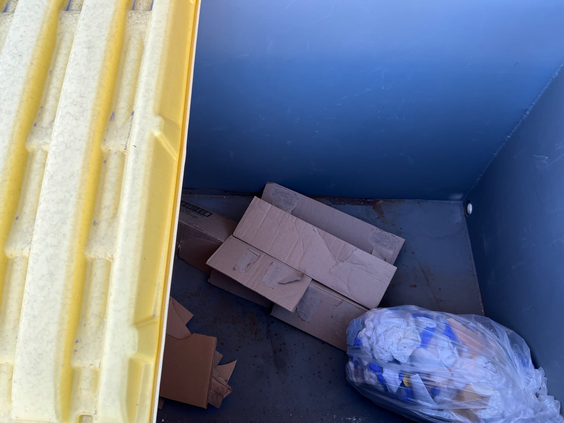 If this were a waste management bin, this would be a fine. I worked at Crate & Barrel for a short period of time and they fined something crazy like $300 for one plastic trash bag.